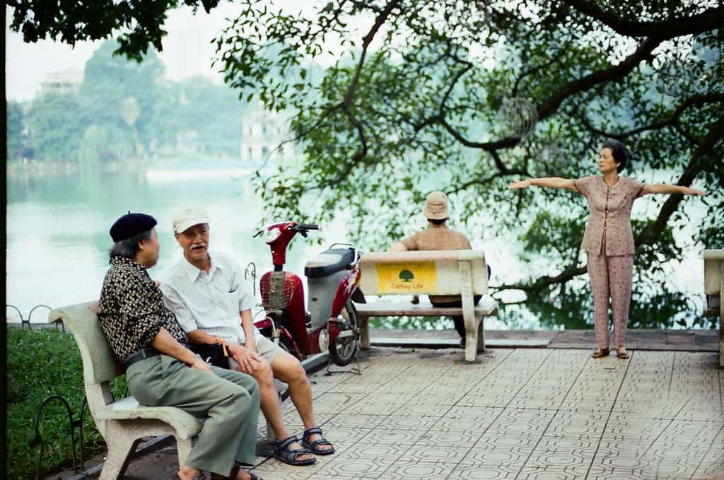 Buổi sáng những người dân Hà Nội thường đến Hồ Gươm để tập thể dục như một nét văn hoá riêng đặc trưng của Thủ đô. Ảnh: Đinh Tuấn Văn