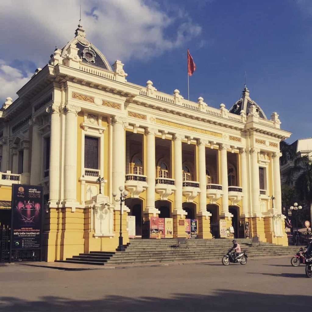 Nằm ở số 1 Tràng Tiền, Nhà hát lớn là một trong các địa điểm du lịch đẹp ở Hà Nội mang nhiều dấu ấn lịch sử. Đây là địa điểm tổ chức những chương trình nghệ thuật lớn của nhiều ca sĩ, nghệ sĩ tên tuổi hàng đầu Việt Nam. Du khách có thể chiêm ngưỡng kiến trúc tuyệt vời của Nhà hát Lớn hay mua vé vào xem một trong những chương trình biểu diễn thường xuyên được tổ chức để có thể tận mắt thấy được hết nội thất tráng lệ của nhà hát