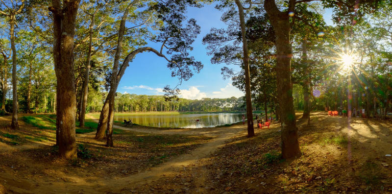 Xung quanh ao là vô vàn cây cao to tạo nên bầu không khí trong lành, mát mẻ