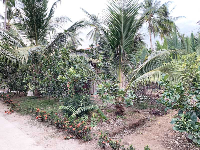 Những khoảng vườn nhỏ trồng đủ loại cây cối, hoa lá của một hộ gia đình tại Cồn Ốc