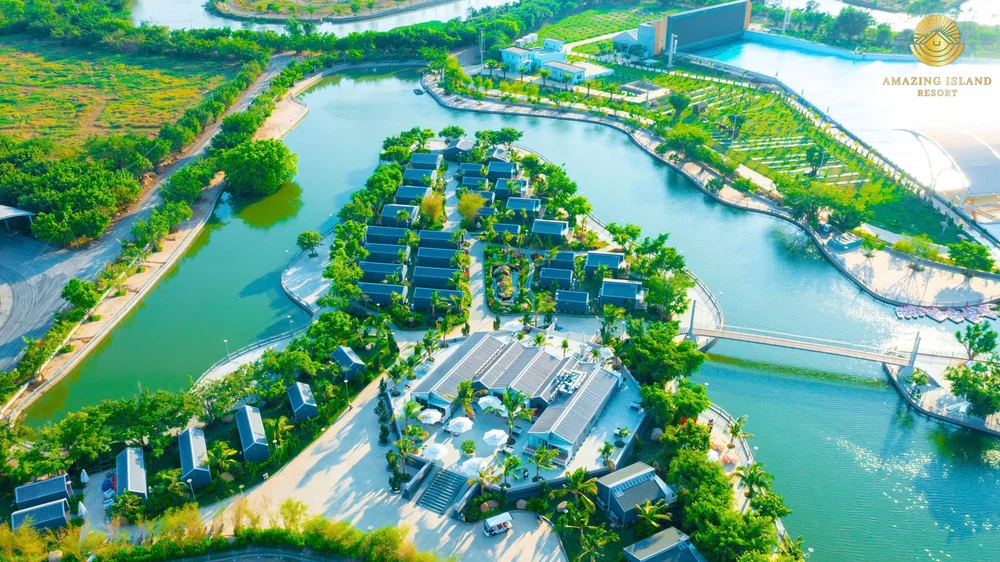 Resort được thiết kế với cảm hứng từ thiên nhiên Đông Nam Á, kết hợp giữa kiến trúc ấn tượng và không gian xanh mát. Các căn Bungalow tại Amazing Island Resort đều có view hồ thơ mộng, được bao quanh bởi dòng sông uốn lượn và thảm thực vật nhiệt đới. Du khách sẽ được tận hưởng không khí trong lành, thư giãn hoàn toàn sau quãng thời gian bận rộn.